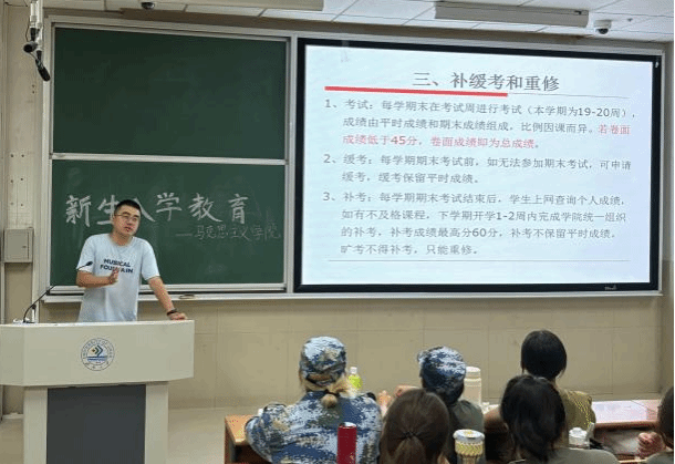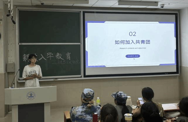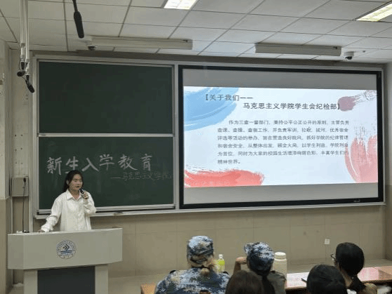 学院特别组织了国防教育,退伍大学生杨润泽学姐为新生详细解读了国家征兵政策、入伍条件、流程及相关优惠政策,并通过分享自己的军营生活和成长故事,激发了新生对军营生活的向往和参军意愿。