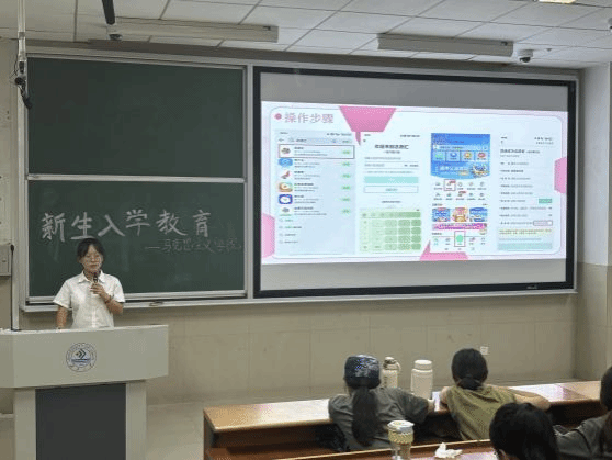 教学管理办公室主任杨星浩老师为新生们进行了教务培训。在培训中,杨老师详细介绍了教务政策、流程和要求,指导新生合理规划学业,并对各类课程的性质、学分要求、教学内容进行了概述。此外,他还提醒新生注意选课时间、课程容量和学分要求等细节,以避免在选课过程中出现失误。