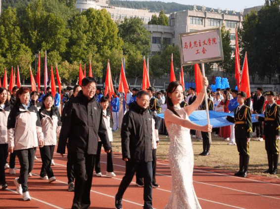 师生们组成的方阵以昂扬的姿态和自信的步伐走过主席台,展现了马院师生奋进向上的风采。