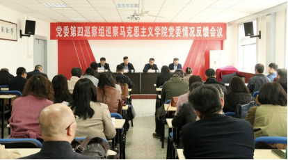 党委情况反馈会议在学院大会议室召开。党委巡察工作领导小组成员、党委巡察办主任丁立波,党委第四巡察组组长,纪委、监察专员办综合处处长张存凯,副组长、党委办公室、校长办公室兼法律事务中心主任李谦,副组长、学工部副部长张晶及其小组成员,马克思主义学院副院长杨立志及全体教职工参加会议。会议由马克思主义学院党委书记刘颖超主持。