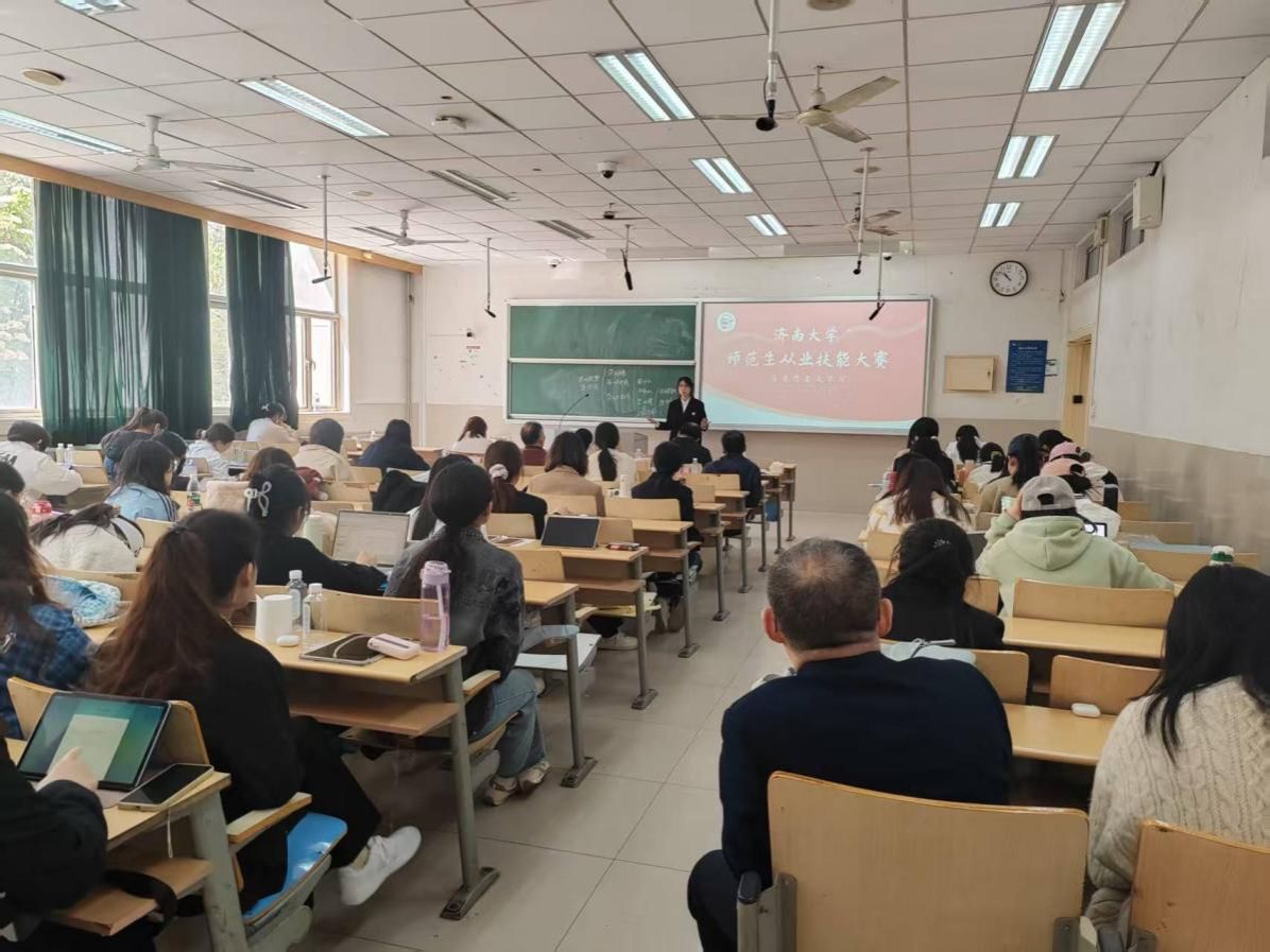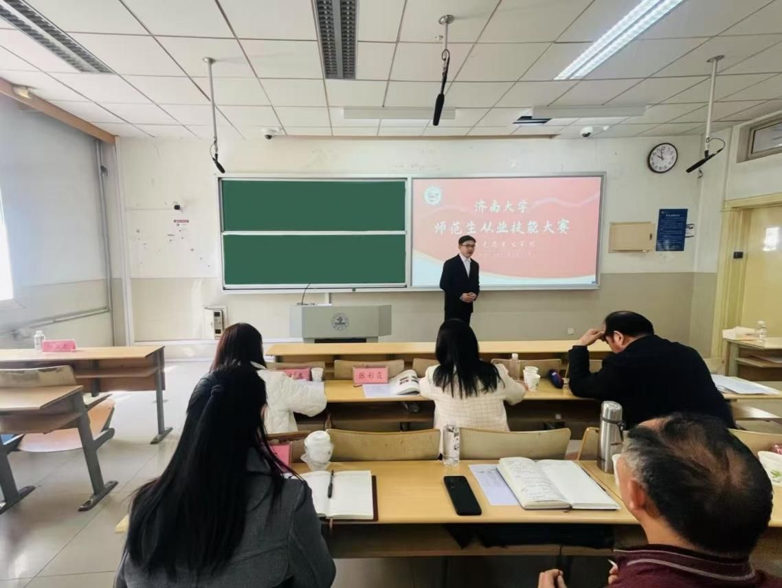 举办师范生从业技能大赛。特邀山东省教育科学研究院张彩霞、济南市教育教学研究院黄万强和山东省济南实验初级中学崔新喜担任校外评委。