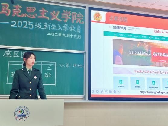 学院还特别组织了国防教育,退伍大学生刘婧婷结合自身在中国人民解放军仪仗司礼大队服役的经历对征兵政策进行全面解读,激发了新生投身国防、报效国家的热情。