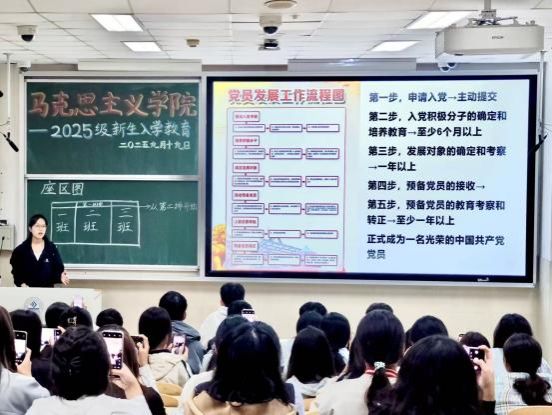 随后,学生党支部负责人聚焦“入党流程与申请书撰写”进行专题分享,让新生更加明确向党组织靠拢的路径与方法,进一步坚定了同学们的入党信念。