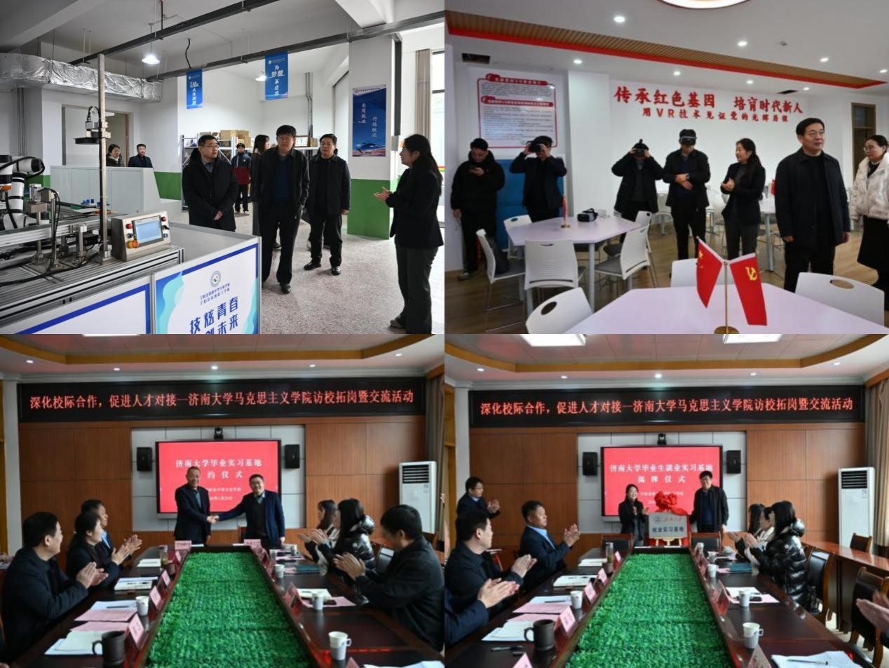 愿发挥高校资源优势,在思政课程建设、教师培训、实践教学等方面提供支持,共同构建协同育人机制。活动中,双方签订了合作协议,并为“济南大学就业实习基地”揭牌,标志着校校合作进入实质推进阶段。