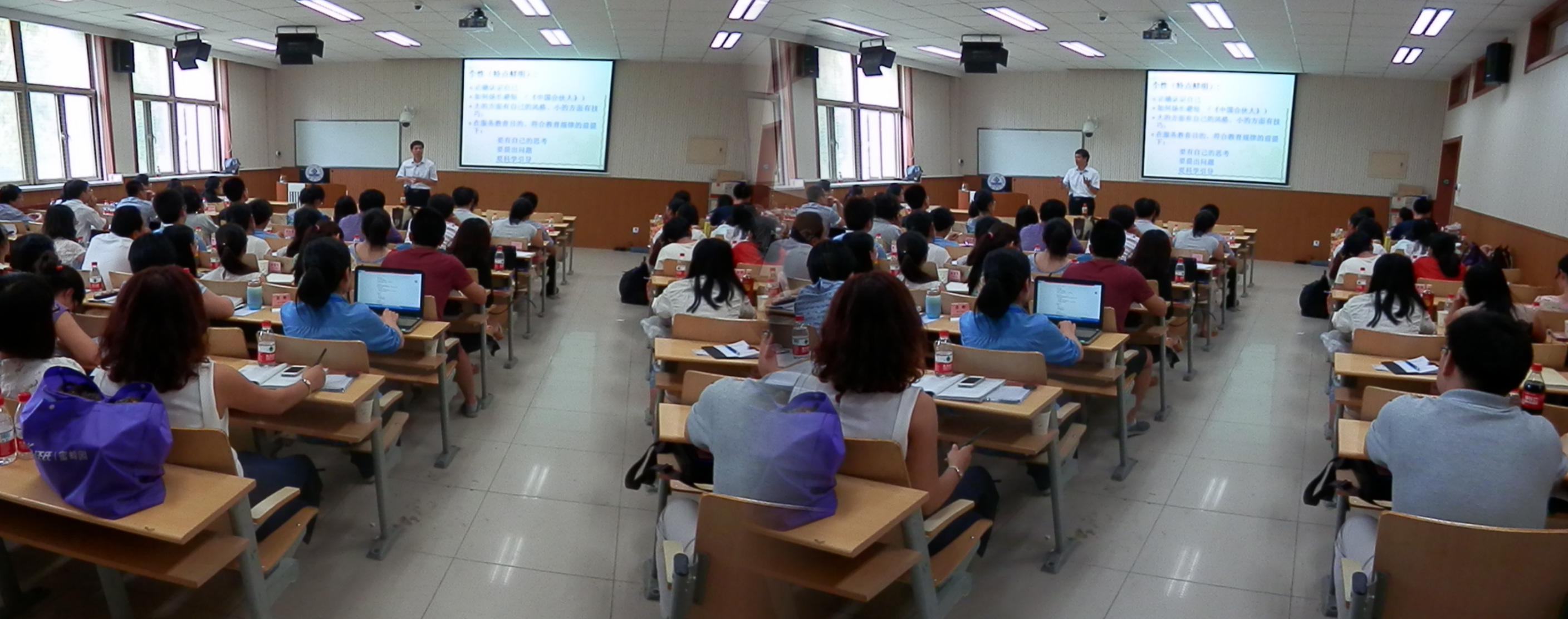 李朋忠老师应邀在10J114教室为参加“济南大学教师发展培训班”的七十余位新进教师做了《如何提高教学能力》的专题讲座和教学示范课。李朋忠老师通过自身经历、亲身体会阐述了“学生眼中的好老师是什么样的?”、“要做一个好老师应该做到什么?”等问题,向青年教师们指出要做一个好教师必须做到十二个字:热爱(工作态度)、明白(专业知识)、付出(备课踏实)、个性(特点鲜明)、实话(实事求是)。大家一致认为,李朋忠老师的讲座深入浅出,内容丰富,语言生动,对参与听课的青年教师尽快提高教学能力将会起到重要作用。