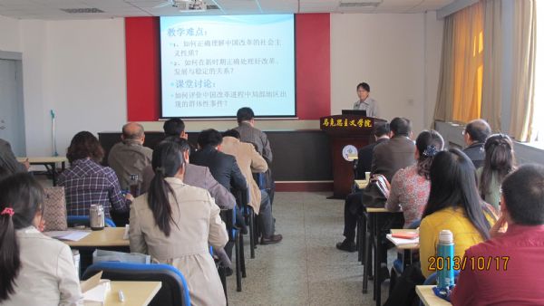 本次活动共分为“优秀教师示范观摩课”、“新进教师业务提高课”和“随机抽选教师交流课”三个环节。首先,文洪朝院长就此次活动的意义和要求向全体教师做了强调并对此次活动安排进行了简要部署。接着,六位讲课教师依次开始讲课。