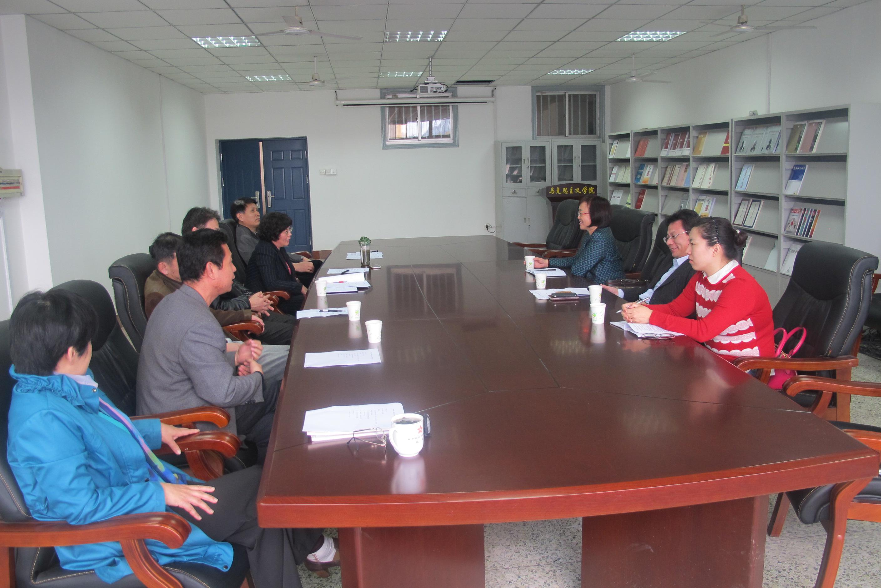 担负的四门思想政治理论课建设等方面的基本情况进行了简要的介绍,汇报了学院下一步工作的目标。参会的骨干教师就学校下一步的学分制改革和成立学院教授委员会等问题与调研组进行了热烈的交流。